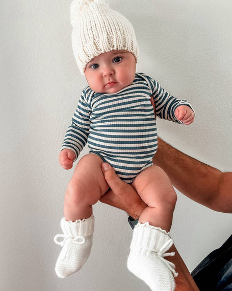 Saddle Stripe Organic Ribbed 2-Way Zip Romper